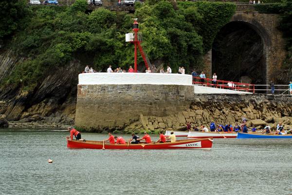 The course takes the gigs out towards Looe island, turning east towards Seaton and then turning again for the return leg to the beach.