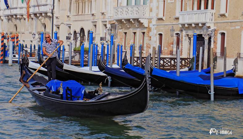 Gondolas are still tied up along the quayside.